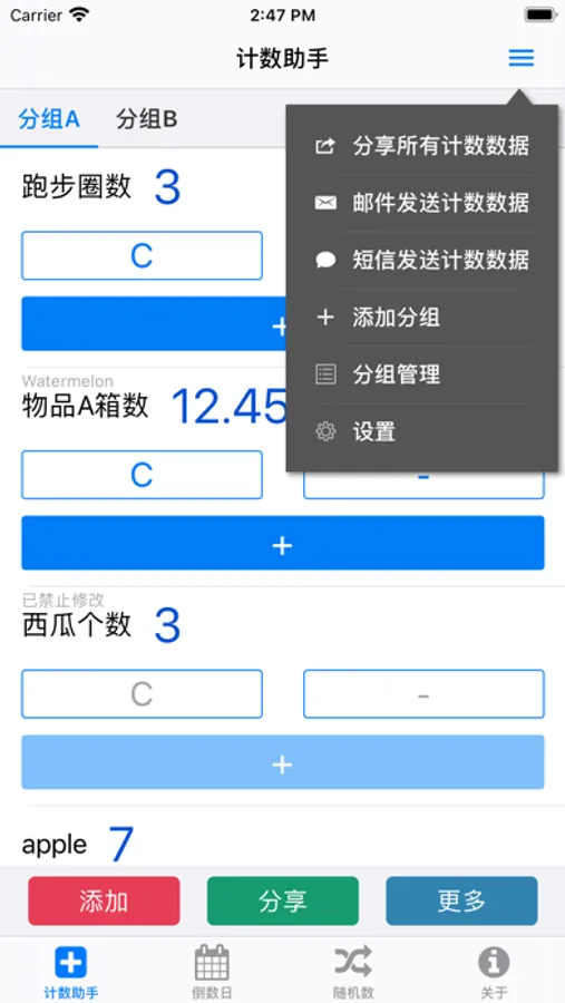 - 支持计数器分组,可添加任意分组,每组可添加计数器。