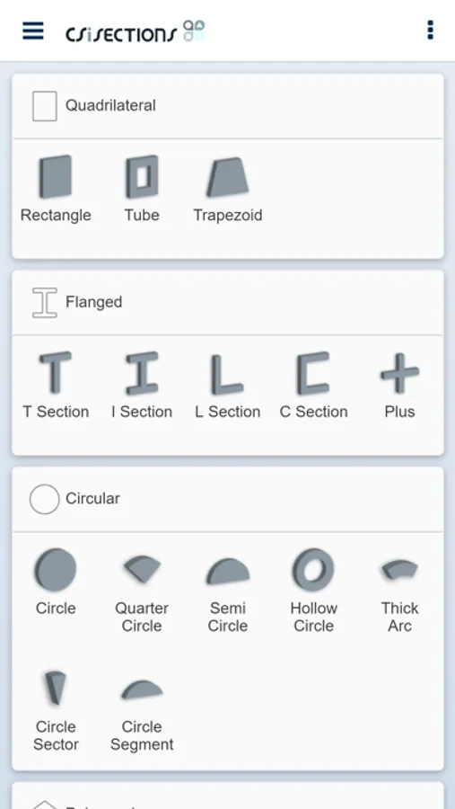 CSiSections is an app that conveniently computes the structural properties of cross-sections of more than 25 shapes.