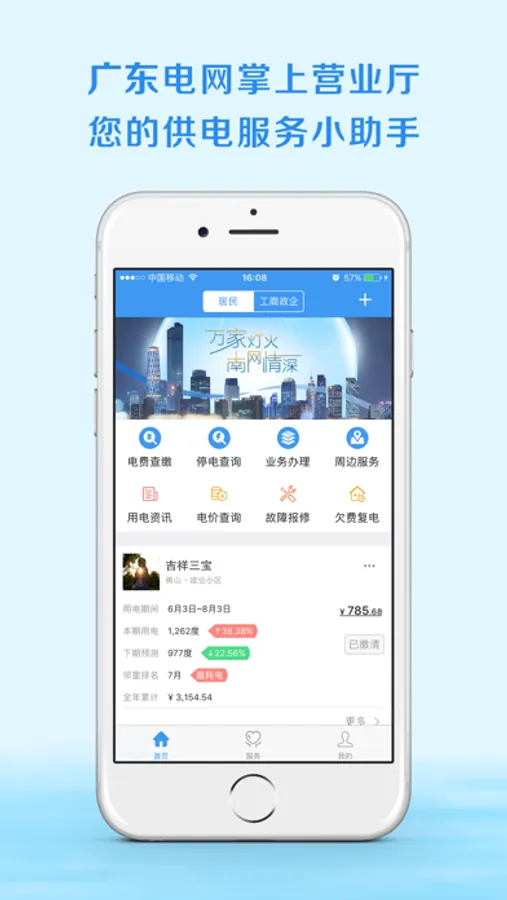 广东电网掌上营业厅,可随时随地了解用电详情,获取服务资讯,查缴电费与办理用电业务。