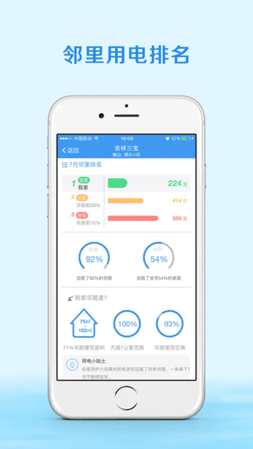 邻里排名-与周边邻里的用电排名对比,争当居家节能达人;