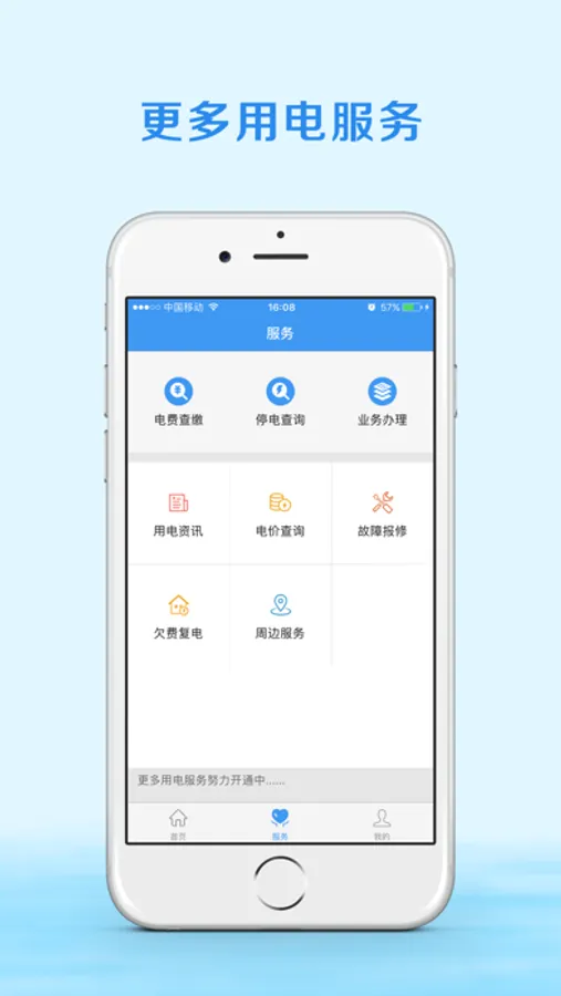 你在使用周边服务、用电地址选择等功能时,将会使用GPS定位服务,以便获取到你的位置信息,从而提供周边营业网点等便捷服务