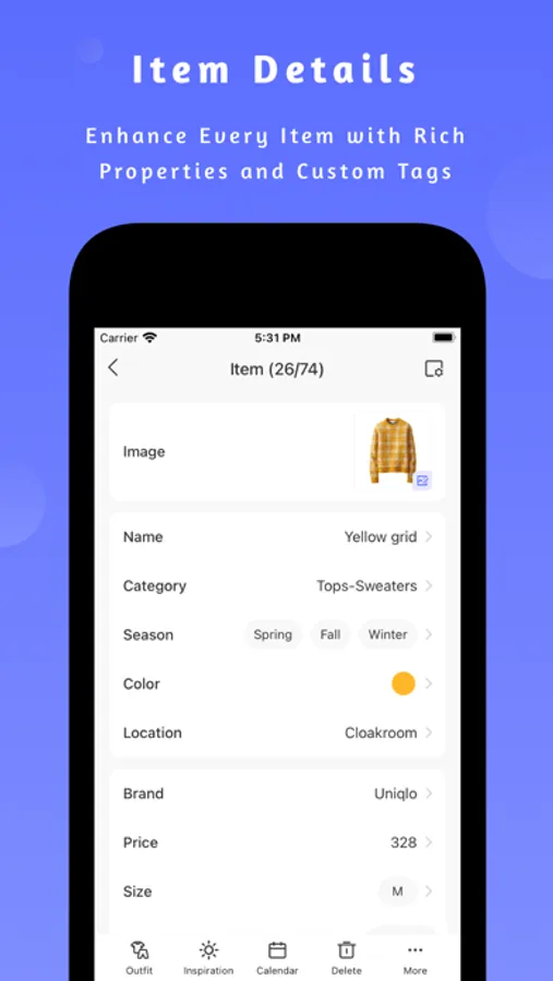 - Freedom to define occasions for each outfit to have its exclusive stage