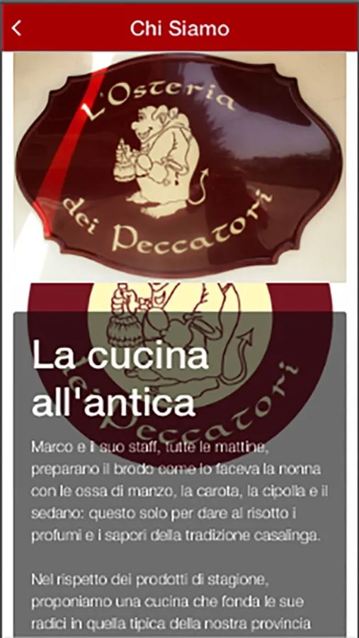 La nostra App personalizzata Osteria dei Peccatori vi consentirà di rimanere aggiornati su tutte le nostre novità, serate speciali, eventi e tanto altro.