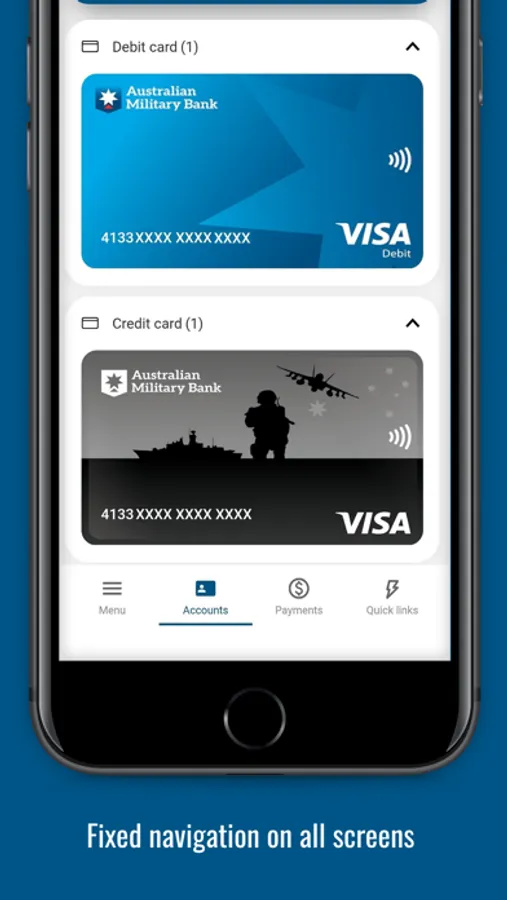 Terms of Use apply and are available at australianmilitarybank.com.au/mobile-banking-app-terms-of-use.