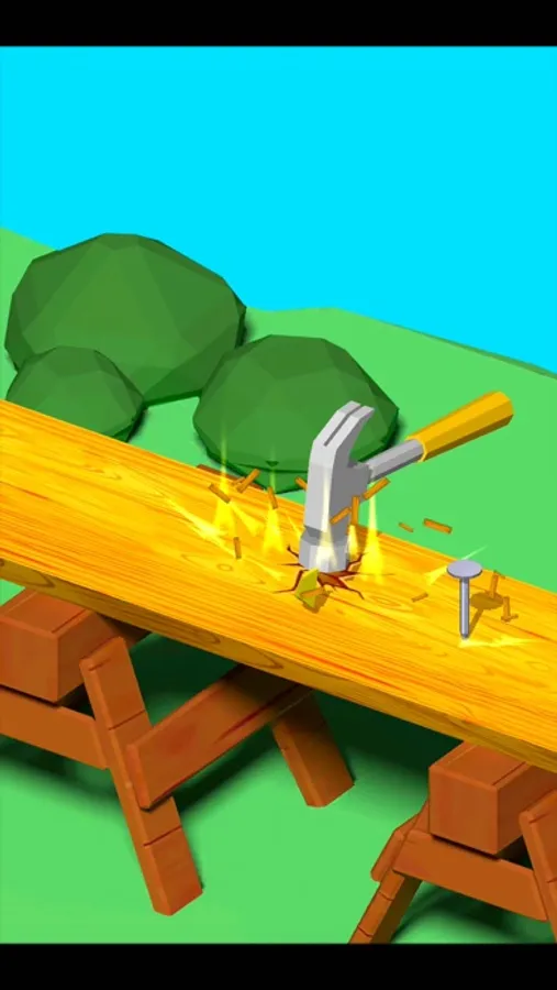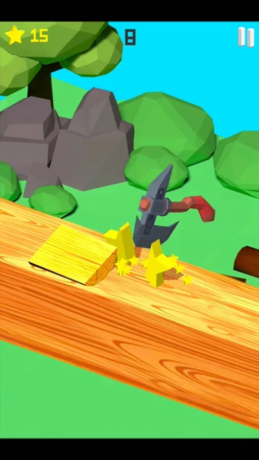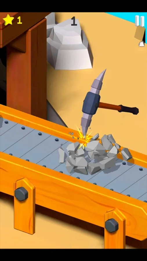 You can become a woodcutter and start cutting wood. Chop it up! You can become a builder performing a simple job that requires precision work with a hammer. Nail it! Or you can become a miner - take a heavy pickaxe and start spliting stones. Break it!