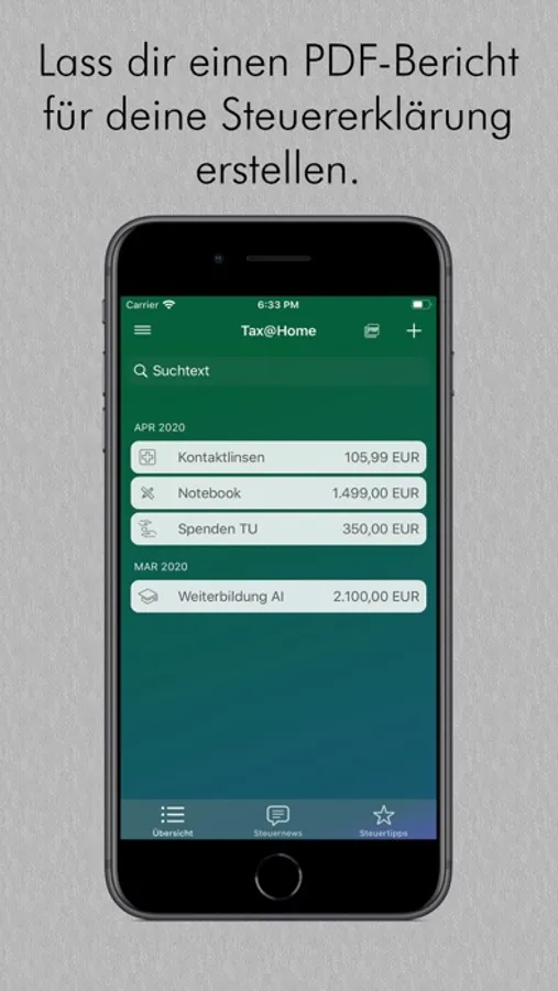 Tax@Home macht es möglich, deine Daten für die nächste Arbeitnehmerveranlagung oder Steuererklärung unmittelbar und komfortabel zu verwalten und gleichzeitig die Informationen für dich nutzen. Ab März kannst du die automatisch aufbereiteten Daten ohne Nachdenken bei Finanzonline/Elster angeben und deine Steuererklärung abschließen.