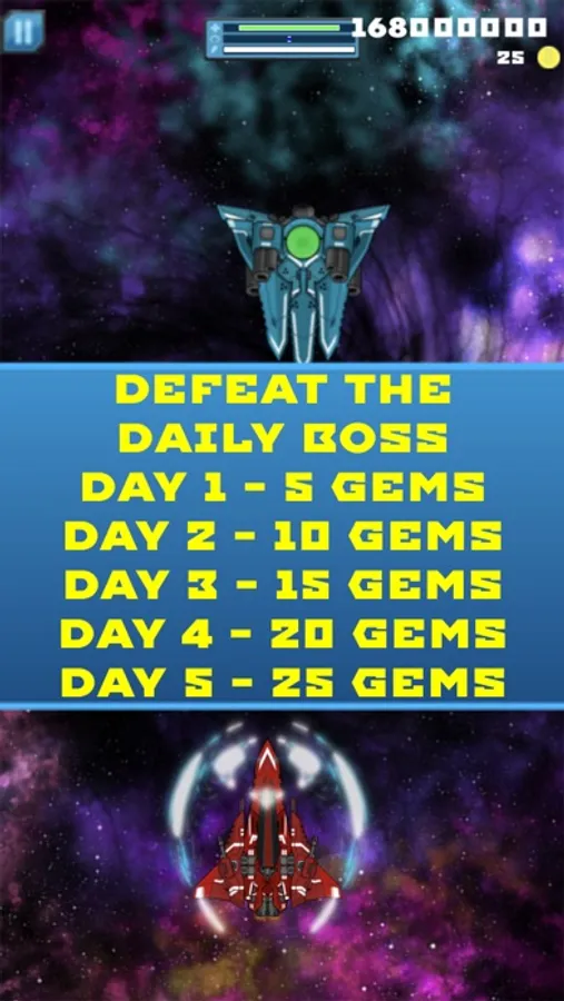 - Day 1 - Defeat 1 boss for 5 gems
