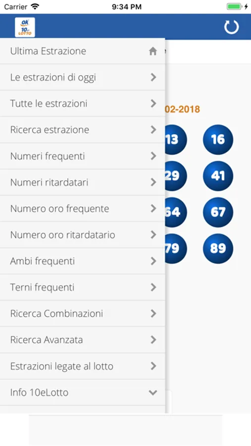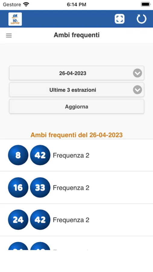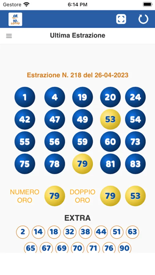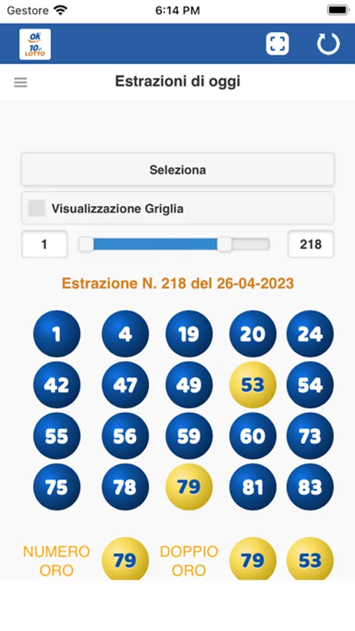 Verranno visualizzate tutte le estrazioni del 10elotto con evidenziati i numeri estratti.