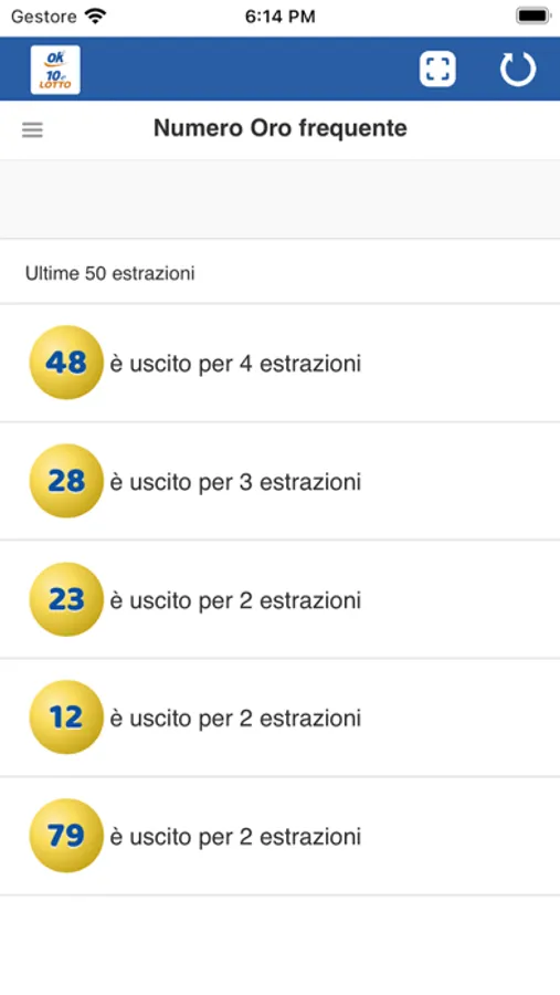 Elenco del numero oro frequente delle ultime 50 estrazioni del 10elotto