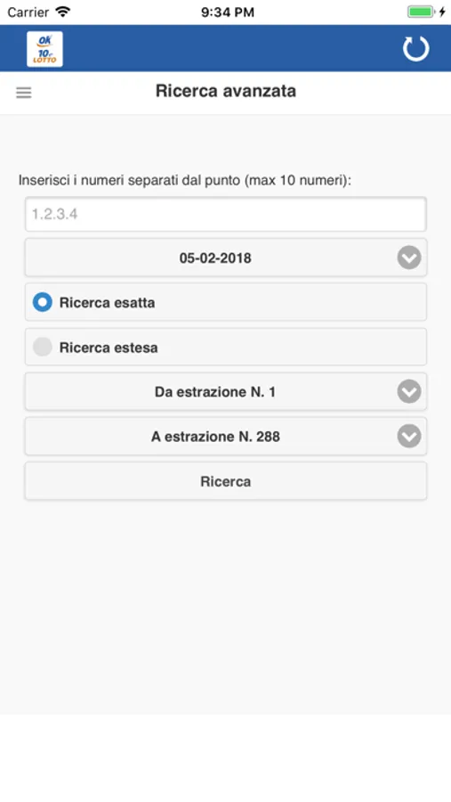Puoi finalmente ricercare per numeri (separati dal punto), data, numero estrazione iniziale e finale.
