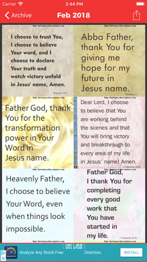 Each morning you will have one prayer delivered to your phone notification when it is enabled. The prayers are beautifully designed and have a nice background.