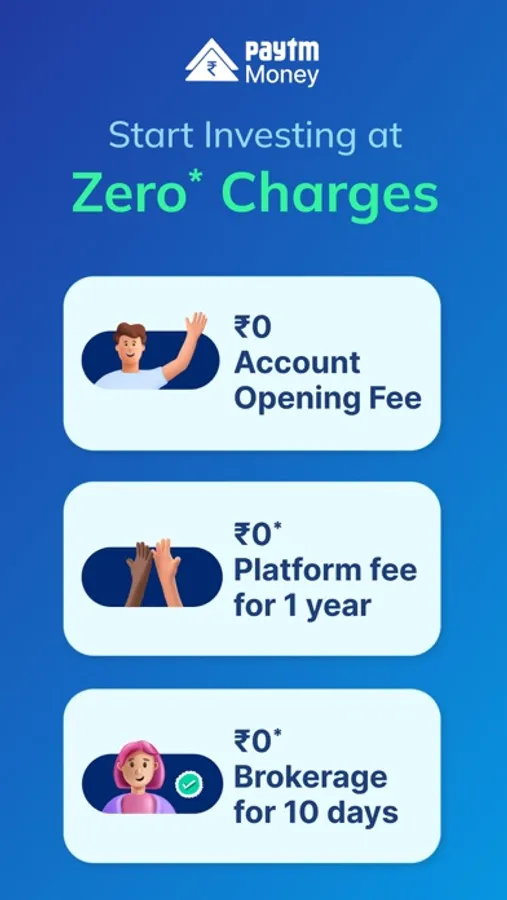 0 Brokerage* charge applicable for all Equity Delivery, Intraday, Futures & Options orders for the first 10 days for everybody who opens their account on Paytm Money