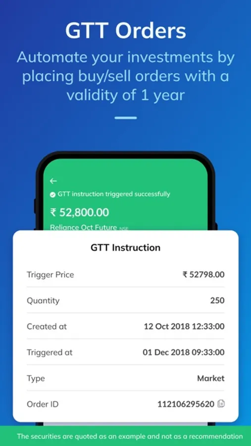 - The GTT buy & sell order feature sets up instructions to place buy/sell orders valid for 1 year.