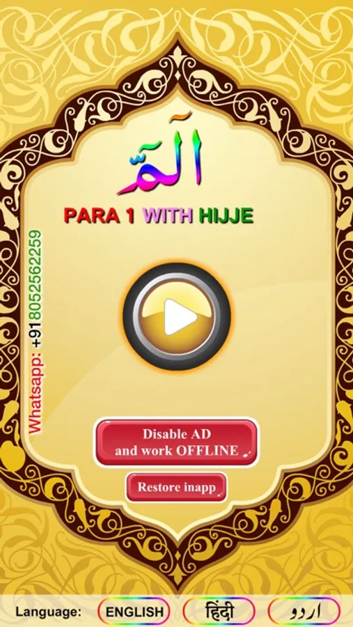 The Holy Quran is divided into 30 chapters also known as Thirty PARA's. In this application PARA ONE which is also known as Alif laam meem PARA is presented in hijje. It is in english, hindi and urdu.