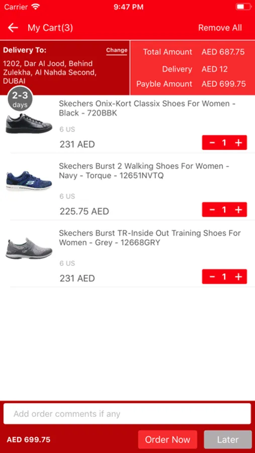 - Wide Range of products - Brands - Shopping List - Navigation - Deliver Later