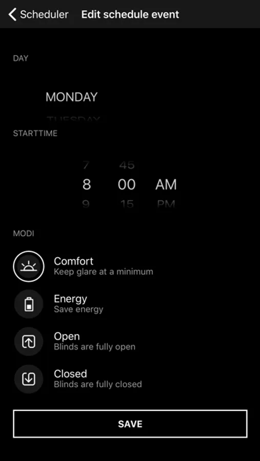 • The blinds can be controlled automatically based on movement, light sensors as well as the time of day and sun position