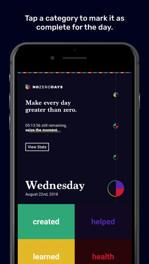 That’s it - no zero days does nothing else. It is meant to simply join your day to day routine and help you remember to take at least one action each day that helps yourself or others. Easy right?