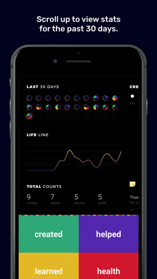 Scroll up and down to see the past few weeks, and scroll all the way up to see some basic stats and visualizations of the last 30 days.