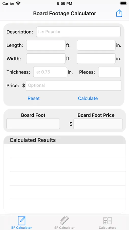 Footage Calc is a way to calculate board feet and square feet easily while in a rush or in the lumber yard, with a calculator section to help with conversions.