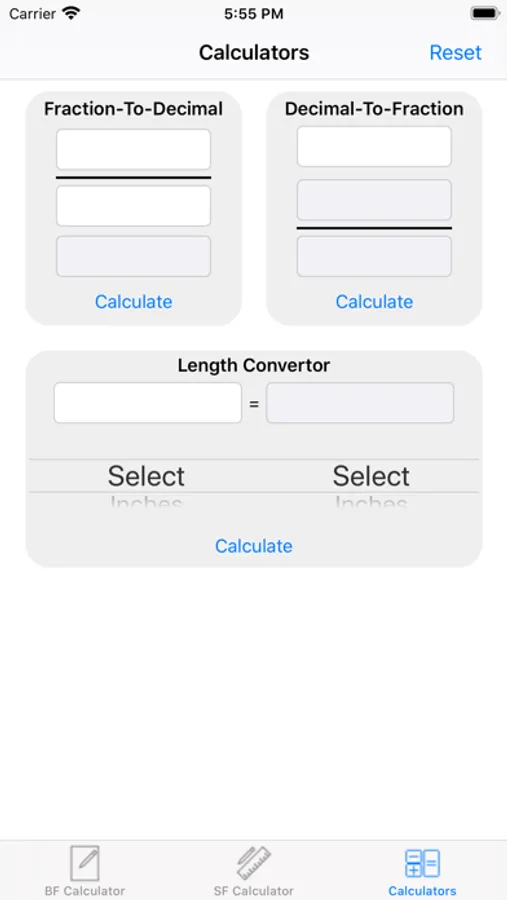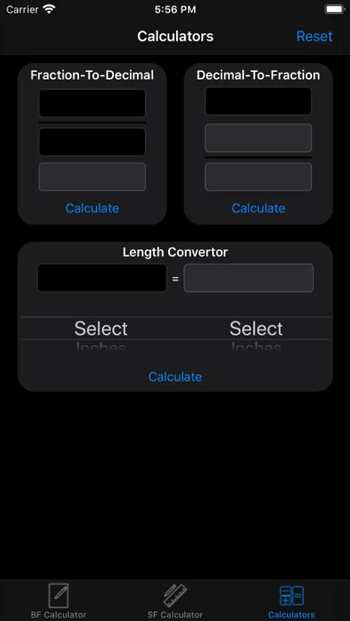 Calculator allows for the user to convert number to fraction and to reverse and convert a fraction to a number. Also, a length converter is provided to convert a number measurement to another measurement. The types of inputs excepted are inches, feet, yards, meters, millimeters and centimeters.