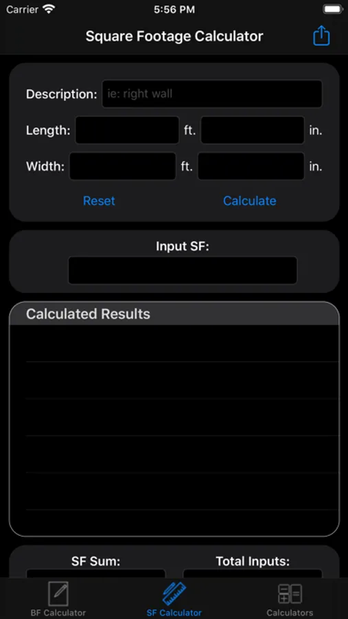 Square footage calculator allows the user to input length and width. Length can be entered as a whole number and inches can be entered with a decimal if needed. There is also a description input that allows for each input to be labeled. After each input, a tally is kept to keep the total square footage and the number of pieces. Also, each input calculation is displayed. All inputs are then stored into a table below where entries can be removed if needed. There is a CSV export feature that allows for each entry to be saved to a CSV file and exported via email to the user or others.