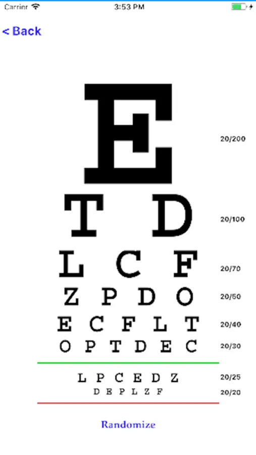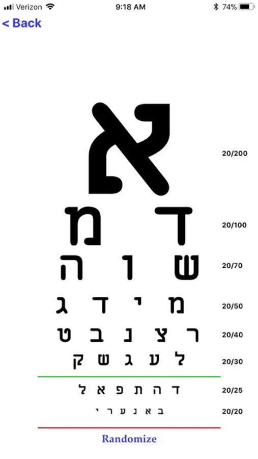 *Eye Chart with randomization capability and multiple alphabet options to assess visual acuity