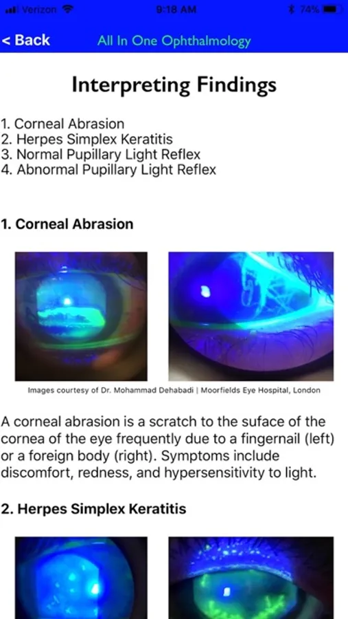 *Interpreting Findings option to review common pathologies that can be seen using the app.