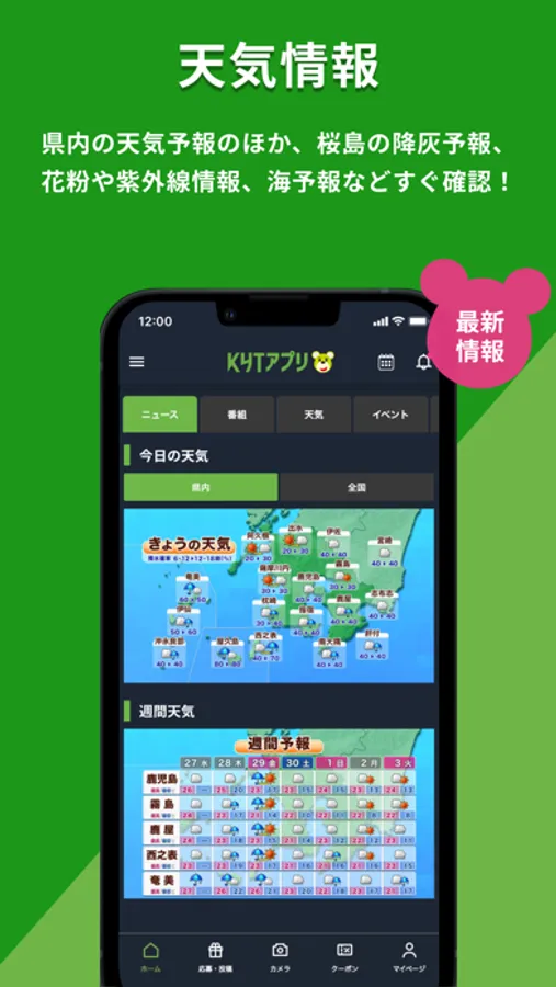 県内の天気予報のほか、桜島の降灰予報、花粉や紫外線情報、海予報などをお伝えします。