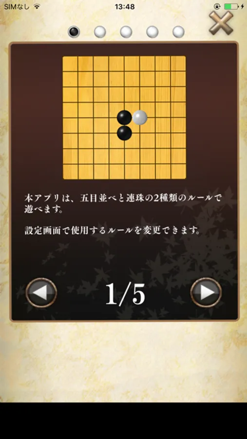 With this application, you can enjoy the game with two kinds of rules: Gomoku and Renju.