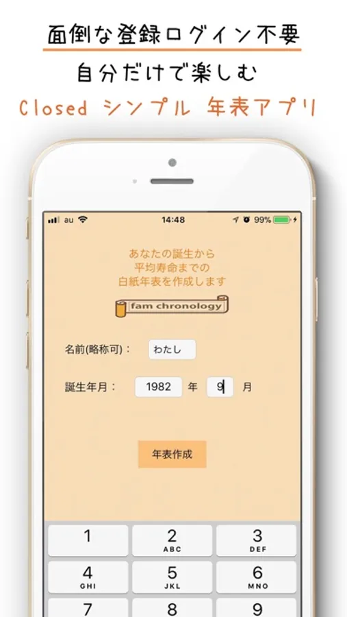 ・最初に自分の誕生年月を入力すると、誕生から平均寿命までの白紙年表が生成されます。