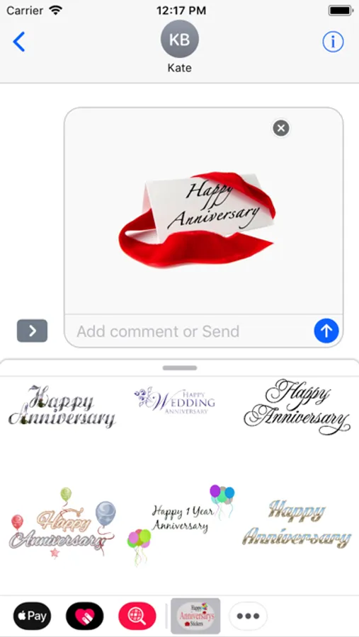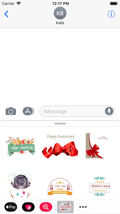 How: Go to iMessage and open the app to send Anniversary stickers too friends and family!