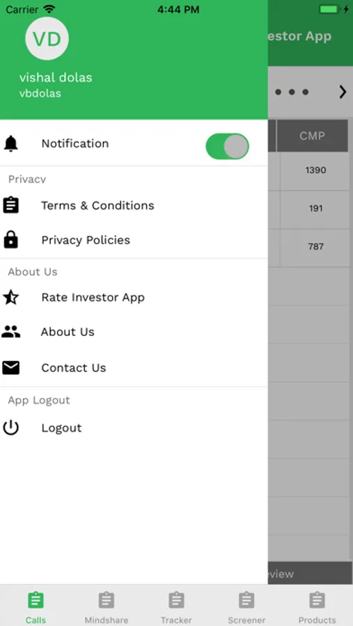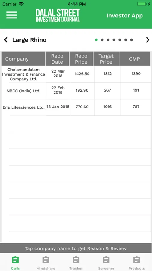 4. Call Tracker- displays status on stocks recommended in the past.