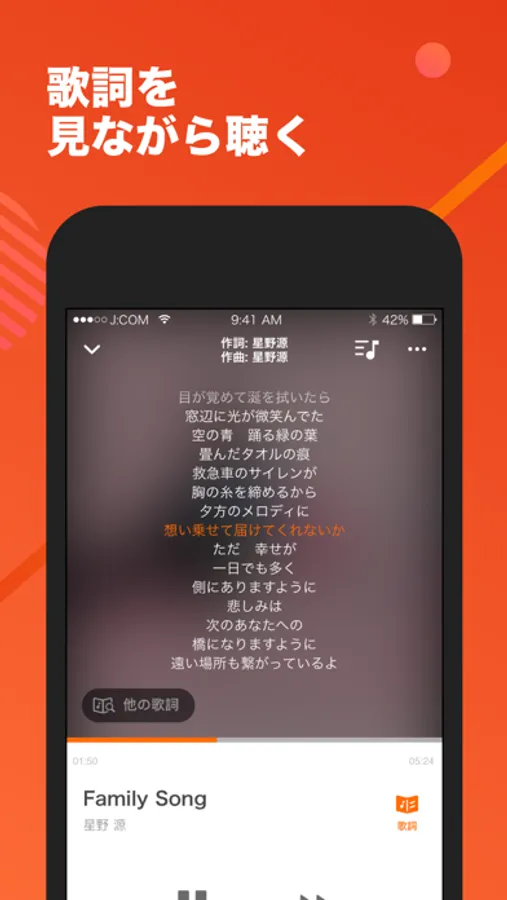 歌にあわせて流れる歌詞で好きな曲をさらに楽しむことができます