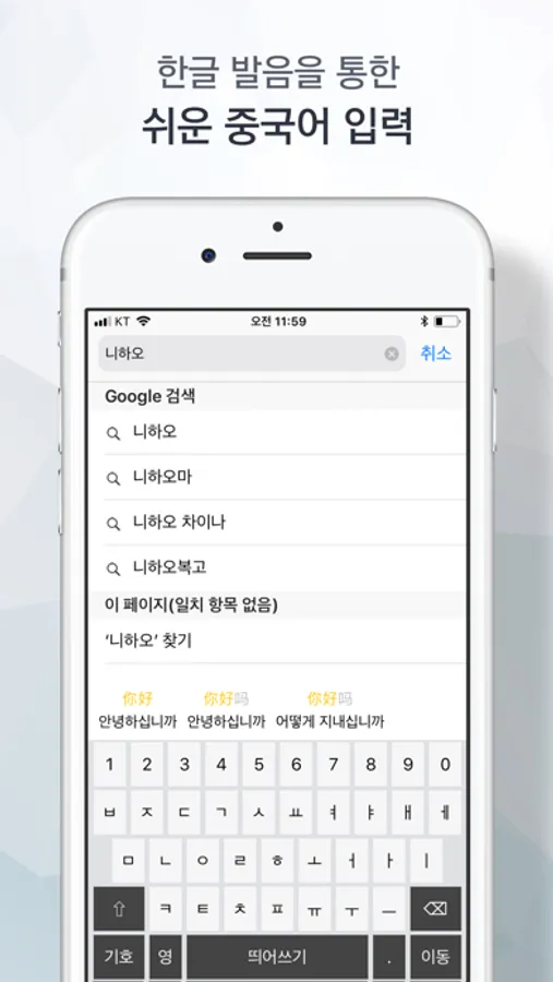 - 중국어 발음 한글입력을 통한 중국어 입력.