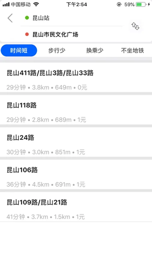 1. 随时随地准确获取昆山公交实时到站查询、线路查询、换乘查询、站点查询等信息。界面简洁,一目了然;