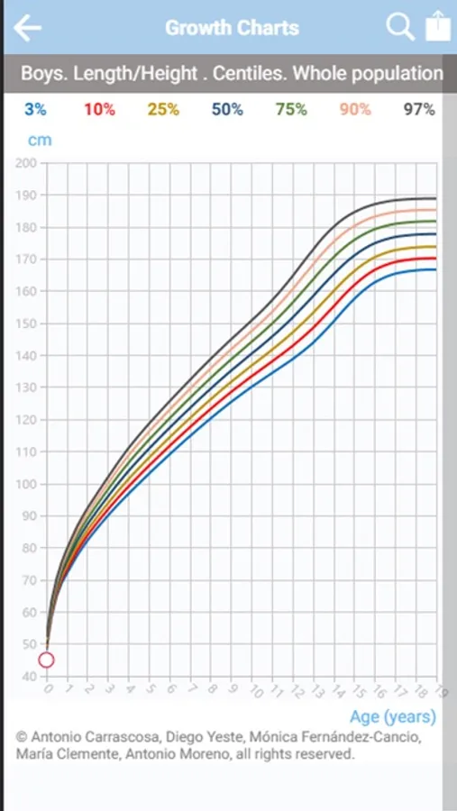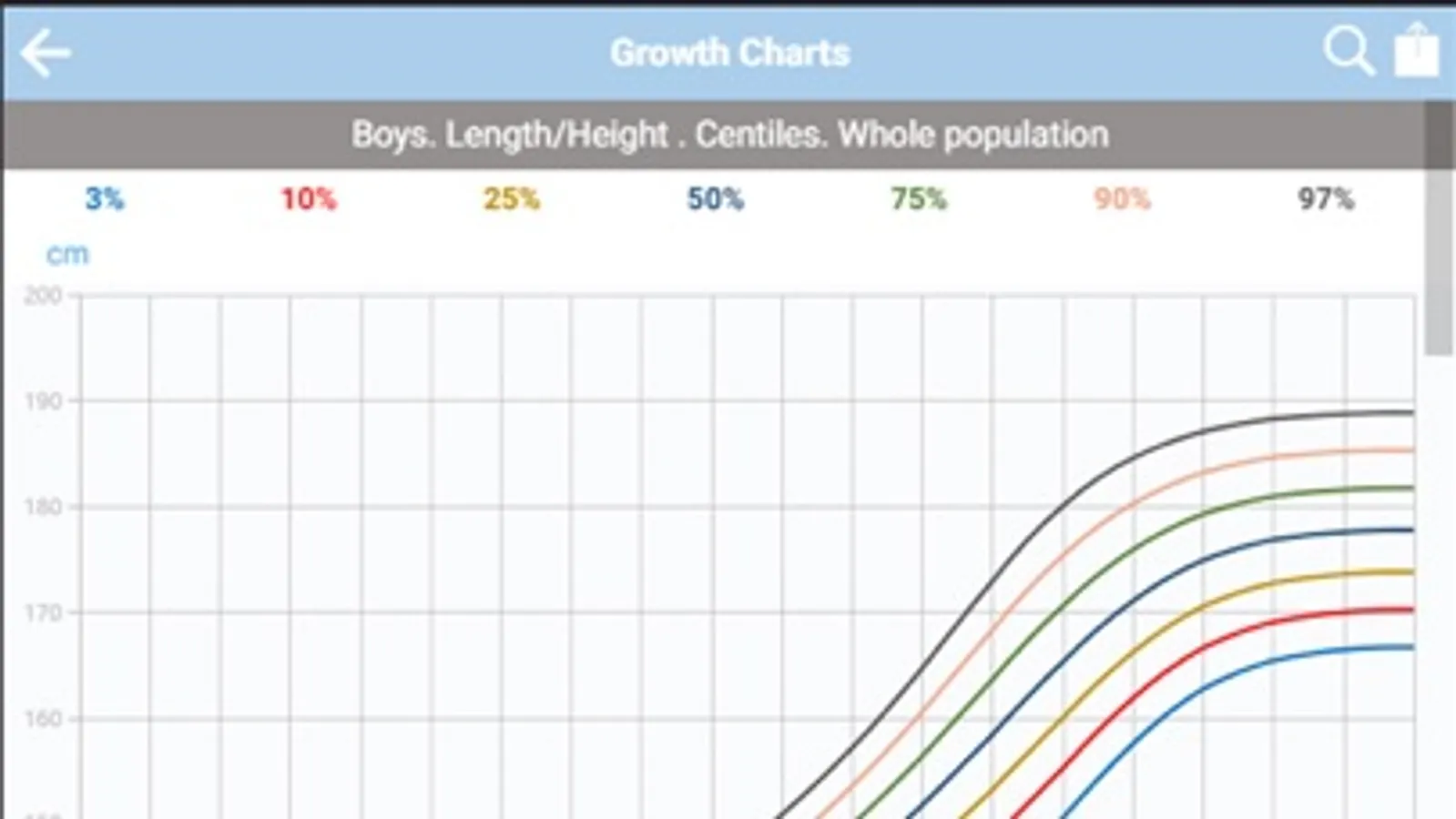 Register dates, weights and lengths or heights of your (many) children, and see a plot of their longitudinal data (introduced or calculated) on five different growth chart modalities, each one representing seven centile and Z-score (SDS) smoothed lines: