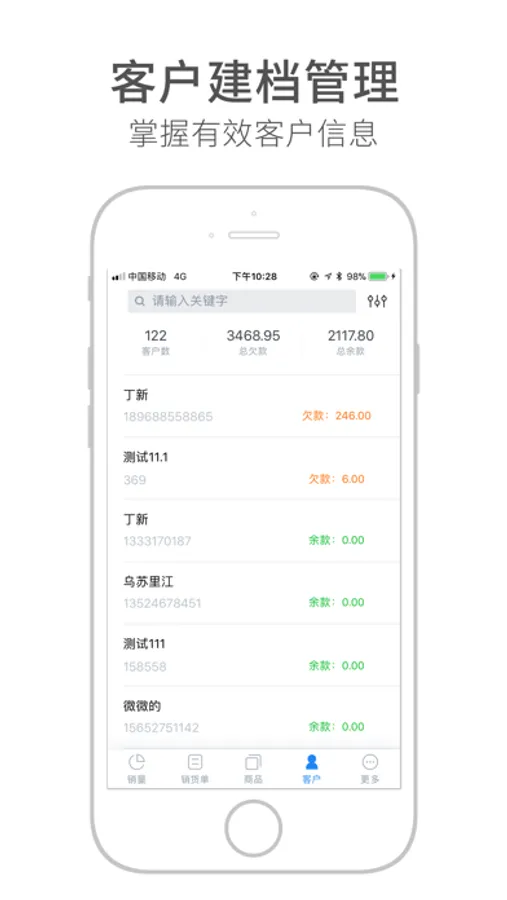创建客户档案,完善客户信息后,可根据购买等级、地域属性等进行客户分类;客户档案完整记录客户订单、商品、收银等历史信息,并提供打印;掌握所有客户信息;