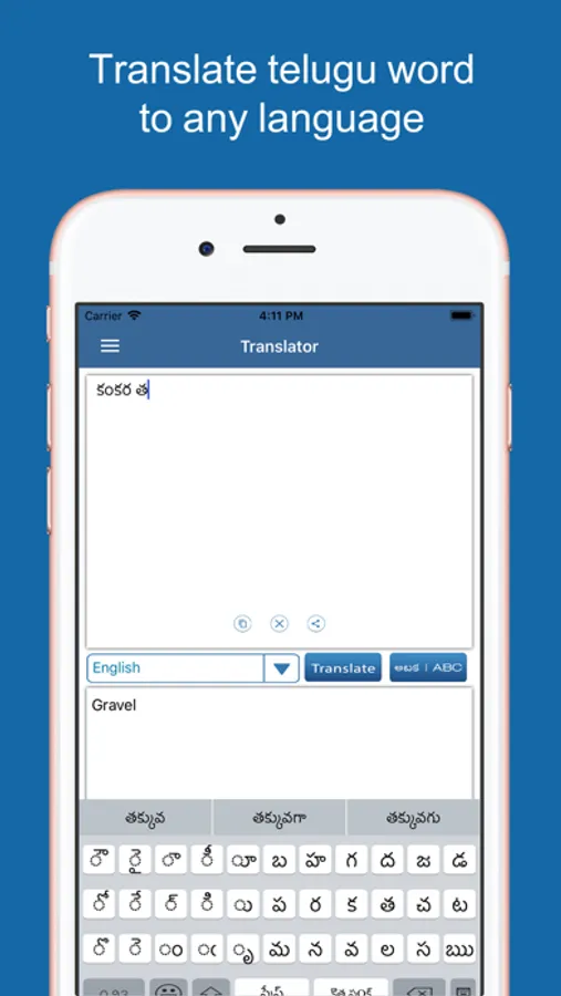 Telugu Dictionary And Translator provide Telugu keyboard to write the message, store, emails, Facebook post in Telugu.