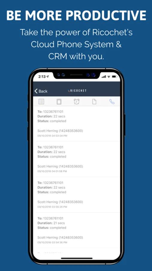 Ricochet360 is an all-in-one sales solution, including a fast dialer, cloud phone system, rich CRM & lead management system, and flexible marketing automation platform. Ricochet 360 Mobile CRM extends the reach of the cloud platform, helping sales and customer service teams remain productive from virtually anywhere.