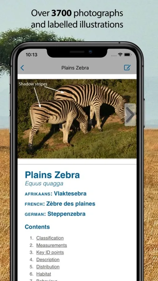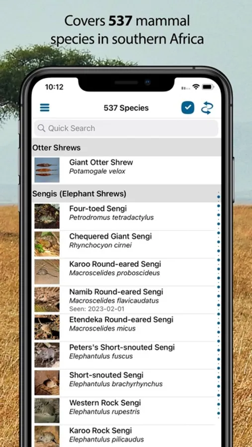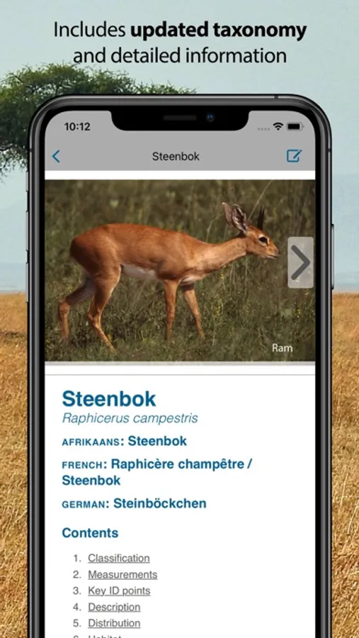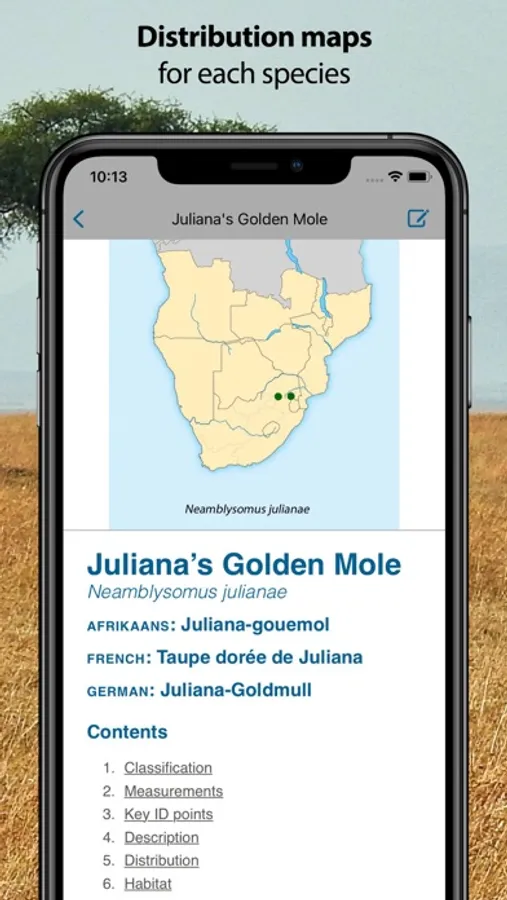 Discover and explore all 537 southern African mammal species with this comprehensive app by experts Chris and Mathilde Stuart. Fully updated, this app now extends coverage to Angola, Zambia, Malawi and northern Mozambique, featuring all southern African mammals, from aardvark, shrews and bats to the dolphins and whales that inhabit coastal and deeper waters. Detailed species entries, photographs, videos, calls, distribution maps and search-by-country functionality enable quick identification, making this app the go-to field tool for students, scientists and all nature lovers. Now with improved location data functionality and new Smart search parameters.
