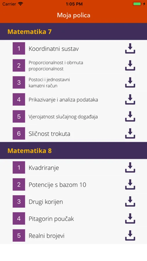Kroz aplikaciju su dostupni digitalni obrazovni sadržaji za 7. i 8. razred predmeta matematika. Izrađeni su u obliku manjih cjelina (modula) koje se može zasebno koristiti, ali pokrivaju gradivo cijelog razreda. Sadrže tekstualne, audio, video, multimedijalne i interaktivne elemente, kvizove, pitalice, vježbe, simulacije i animacije, kao i eksperimente i problemske zadatke. Aplikacija omogućava korištenje sadržaja online, a za korištenje offline potrebno je u aplikaciji preuzeti pojedine module. Pri korištenju sadržaja moguće je podesiti postavke koje reguliraju kontrast, povećanje i prilagodbu vrste slova i elemenata. Ovi sadržaji i aplikacija izrađeni su u sklopu projekta "e-Škole: Uspostava sustava razvoja digitalno zrelih škola”.