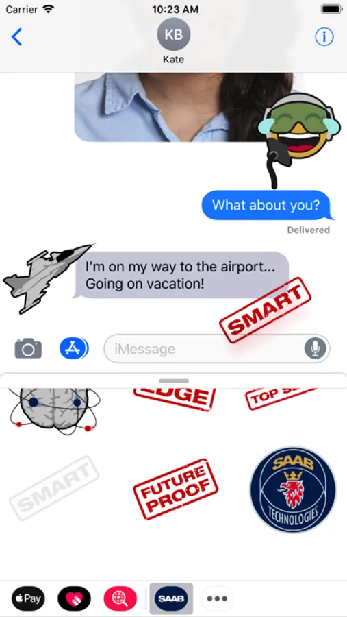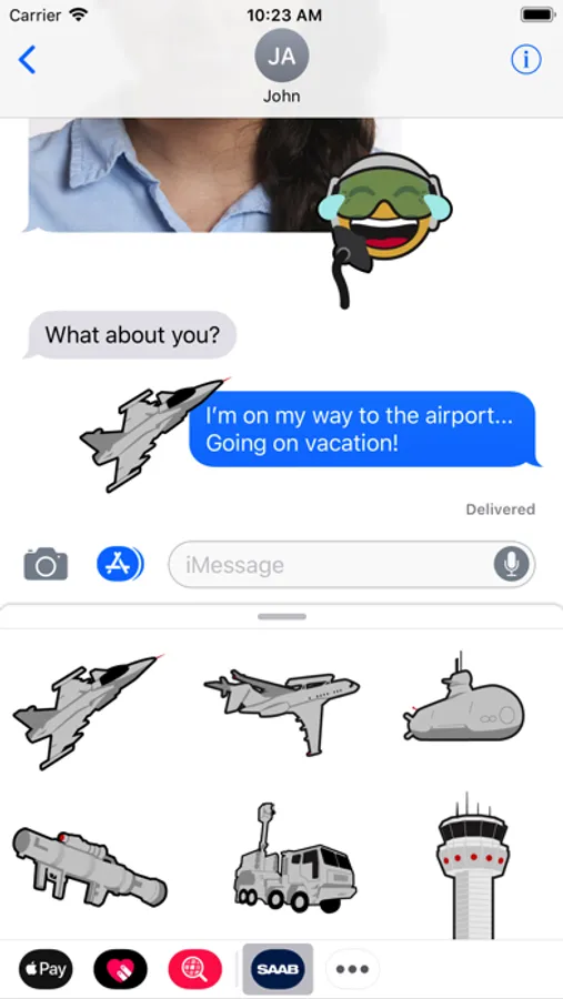 Let your messages take flight with the free SAAB sticker pack for iMessage. Express your mood with the pilot emojis, send a Gripen jet or A26 sub to your friends or let them know that you’re at the Thinking Edge with one of the stamps.