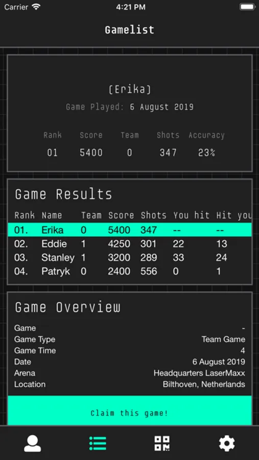 With the QR code on the scorecard you have received at one of our 375+ LaserMaxx centres around the world, you can unlock achievements and see your photos, statistics, and scores in full detail.