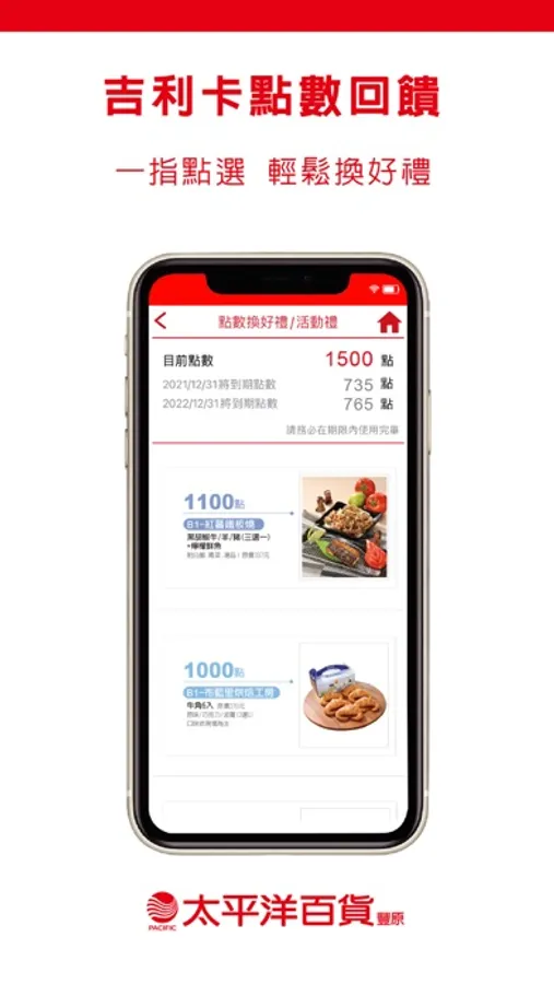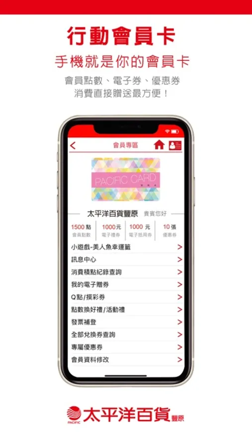 太平洋百貨豐原店APP提供各項多元資訊,讓您消費時出示APP會員條碼即可累積吉利卡點數,更能直接兌換贈品。