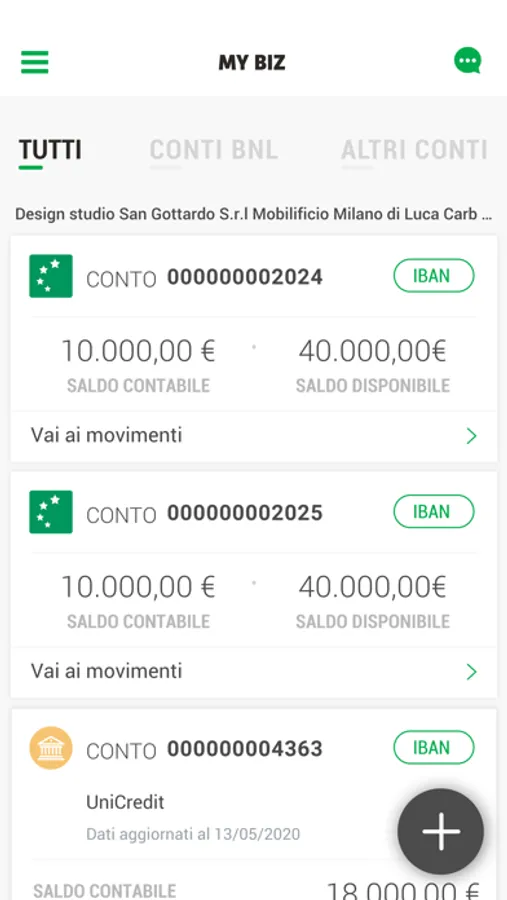 b) la possibilità di accedere ai conti delle diverse aziende del gruppo effettuando un unico login (disponibile con myhub/e-Banking BNL Business pluriazienda)