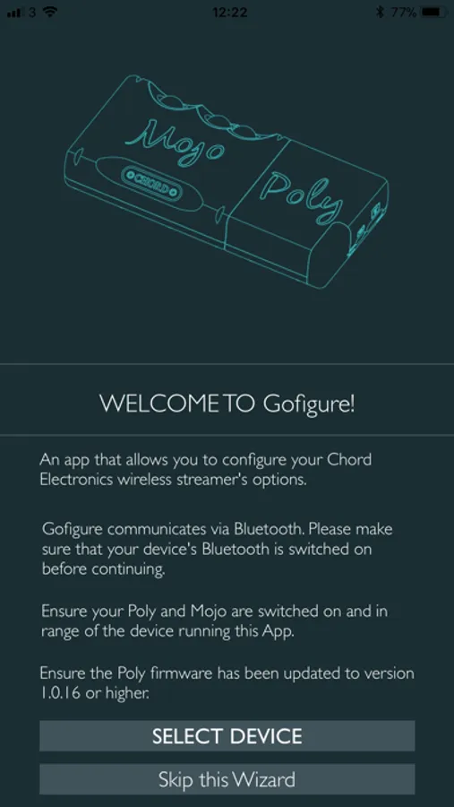 GoFigure for Chord Electronics is a convenient configuration app that allows you to easily view and modify the Wi-Fi, networking, Bluetooth, and playback modes of your Poly streaming device without needing to use the configuration pin and entering access point mode. GoFigure communicates via Bluetooth and has the additional benefit of allowing you to upgrade the firmware, as well as view the firmware version, mac address, free SD card space, etc. Quick play functionality is also included, if required, which enables the simple playback of MPD playlists stored on the Micro SD card.
