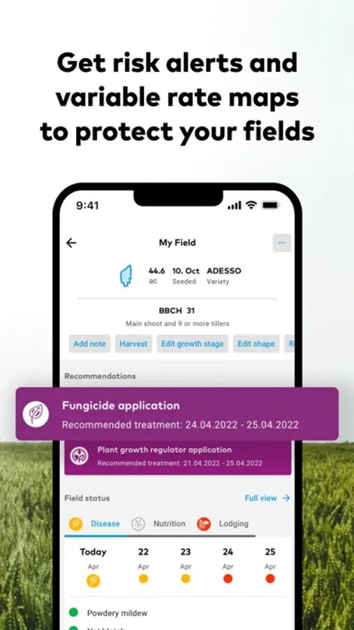 xarvio™ FIELD MANAGER the worldwide leading crop production optimization solution based on 20 years of experience in crop production makes it easy for you to stay in control, protect your crops and get the most out of your fields. Have the status of your fields always at hand, receive field specific optimal crop protection timing and get field-zone specific variable application maps for fungicides and your fertilizer.
