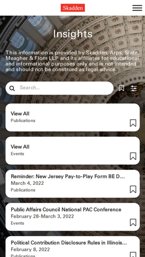 Skadden provides a wide range of political law advice, with particular emphasis on campaign finance, pay-to-play, ethics, lobbying and conflicts of interest in connection with federal, state and local laws. To provide real-time information on happenings in political law compliance, we are pleased to offer this resource app that includes our client alerts, links to government agencies and contact information for our political law attorneys.