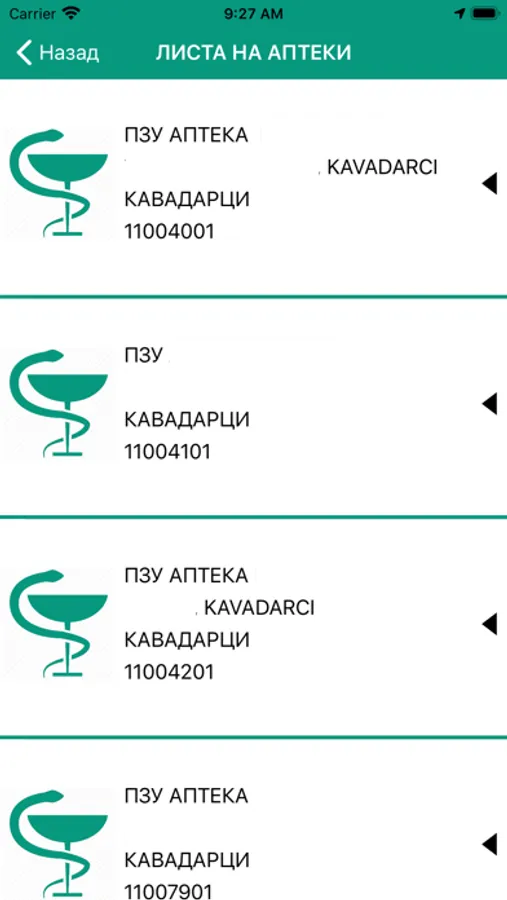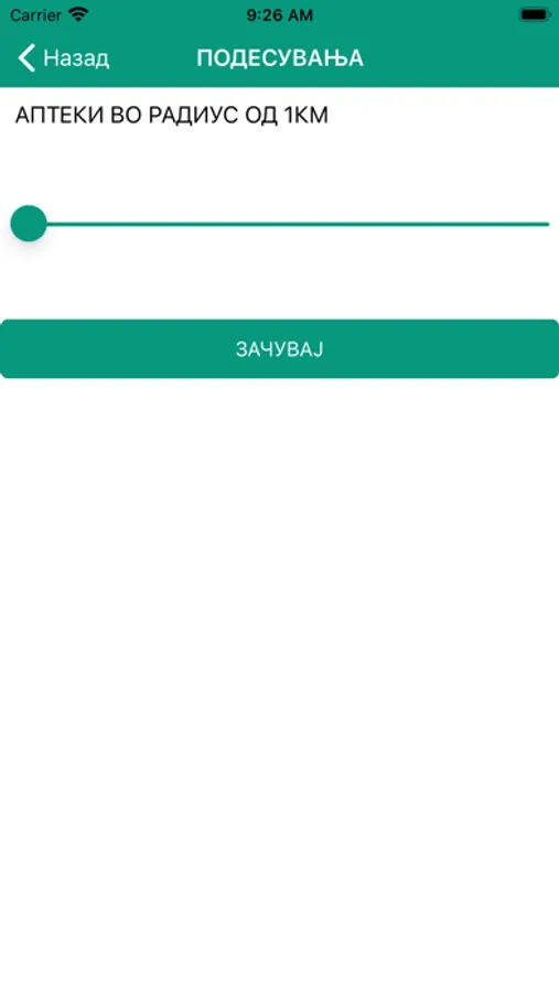 • Поглед на аптеки на мапата, во избраниот радиус;