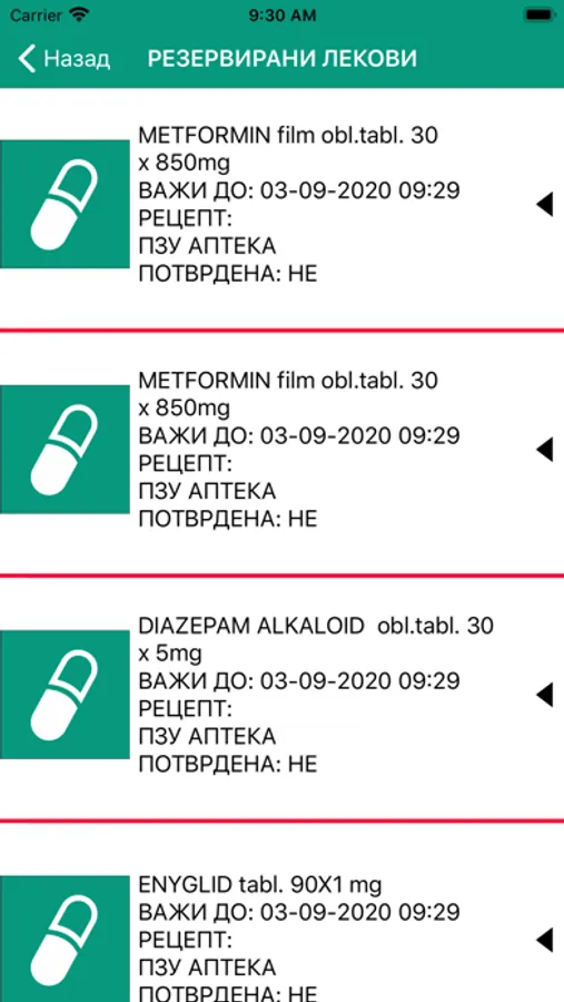• Поглед на резервиран и потврден лек, од страна на аптеките, каде што е побарана резервацијата.